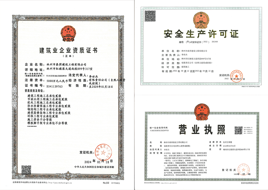 林州市泰昇建設工程有限公司始于1980年初,正式成立于2016年3月1日,注冊資金5000萬元,公司地址位于著名的“建筑之鄉(xiāng)”河南省林州市,是林州人創(chuàng)立的一家有著四十多年發(fā)展底蘊的專業(yè)化、標準化建筑工程公司。 公司現有員工376人,各類專業(yè)技術人員89人,其中一級建造師6人,二級建造師18人,擁有中高級職稱的工程技術和工程管理人員27人,初級技術管理人員38人。 “精細管理、精準經營,精益求精打造精品工程;為人樸實、工作扎實,踏踏實實做實企業(yè)發(fā)展。”這是泰昇人在艱苦的創(chuàng)業(yè)過程中磨礪出來的企業(yè)性格。